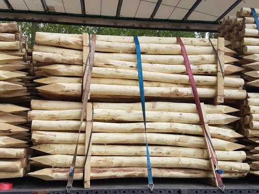 Peeled Poles – bark removed and can be pointed or square ends / chamfered top